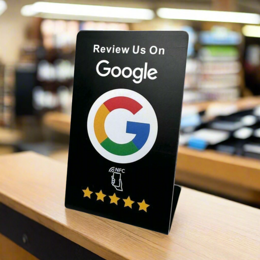 Our Google Review Plates and Stands feature a powerful NFC chip that customers can tap to scan with their smartphones. Once scanned, they are directed to your business's Google review page, where they can leave a review quickly and easily.